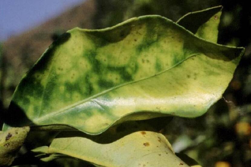 Door Xylella fastidiosa aangetast citrusblad.